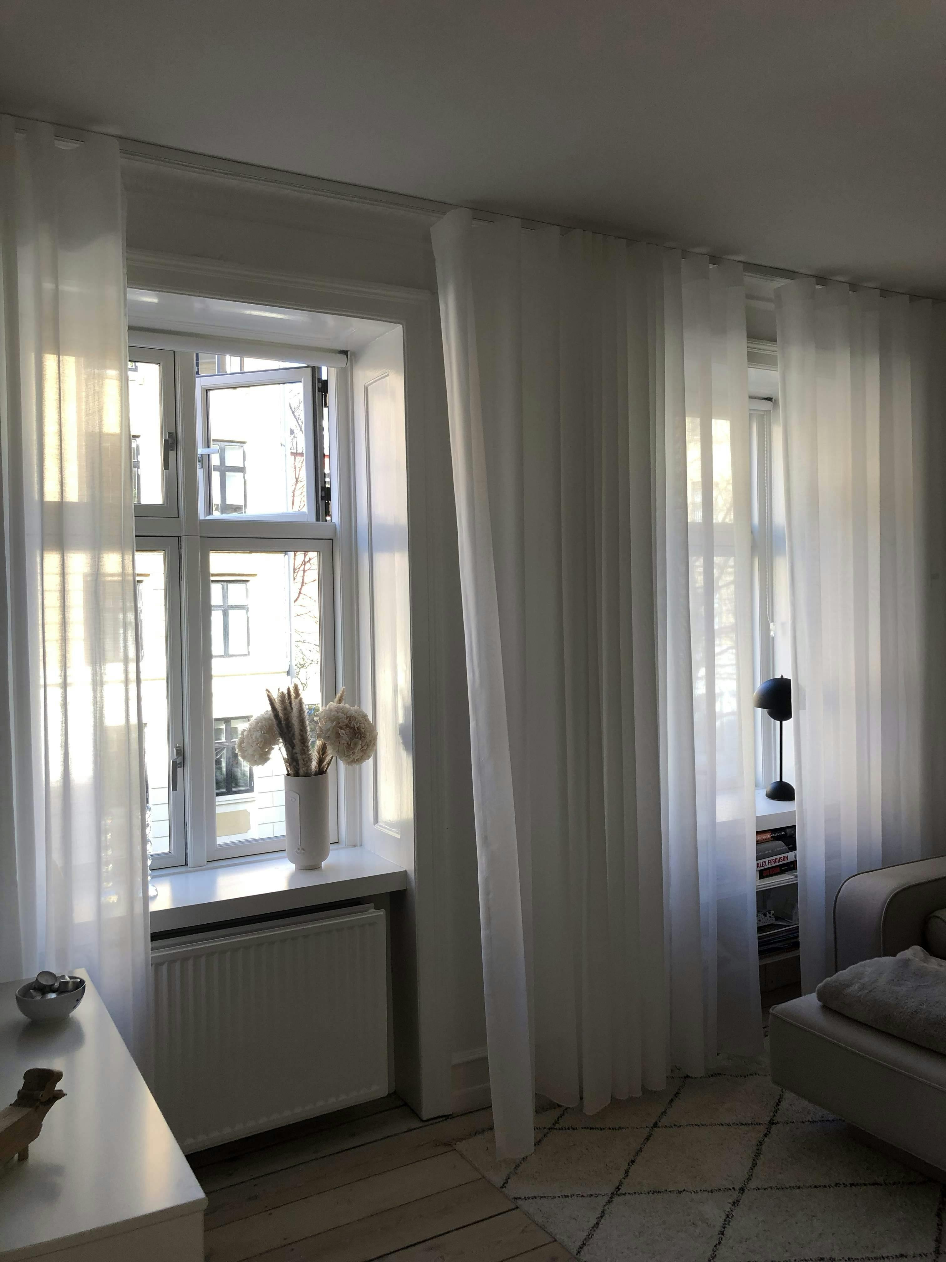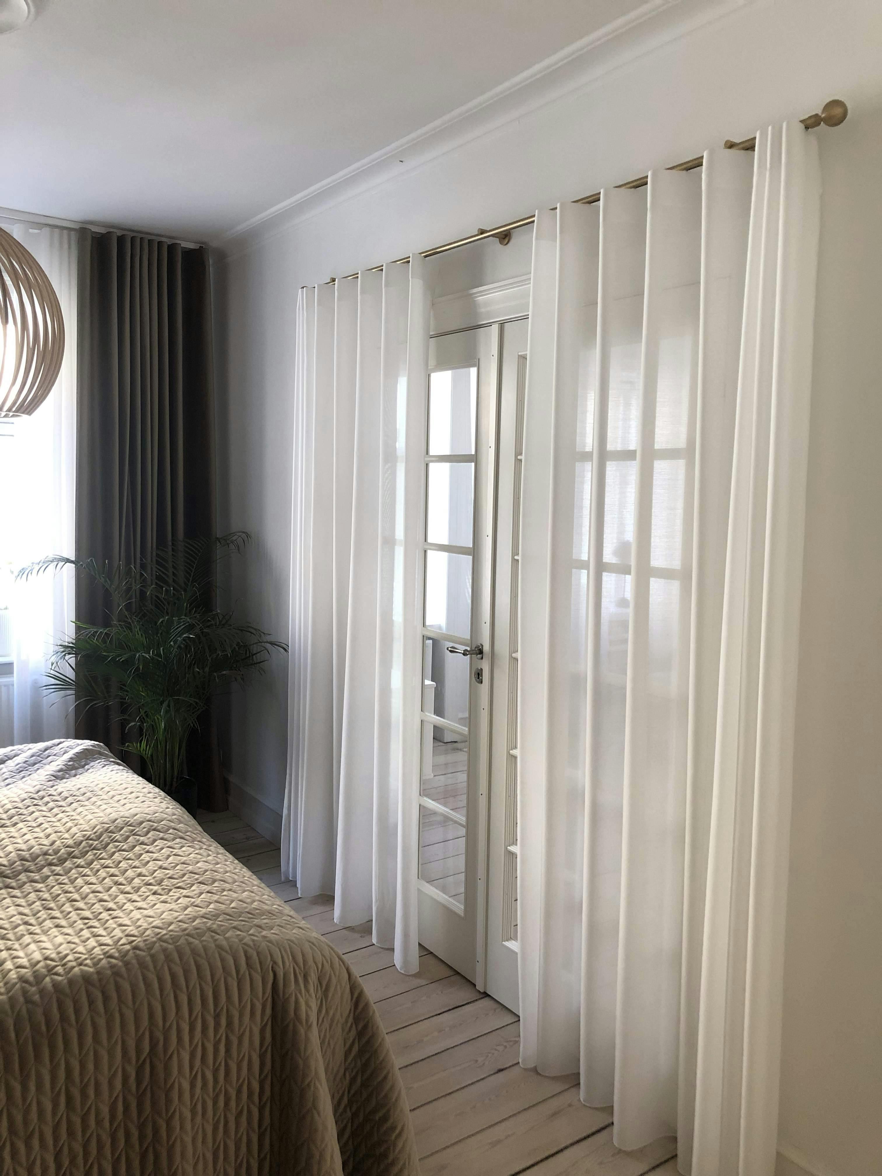 "De to lag gardiner skaber en eksklusiv atmosfære i soveværelset. Hver dag er som at checke ind på et spa-ophold, hvor der er plads til at slappe af og unwinde. I forlængelse af dette, har gardinerne været med til at skabe en rolig og afslappende stemning i stuen, hvilket har tilføjet en ekstra dimension af hygge", fortsætter hun.