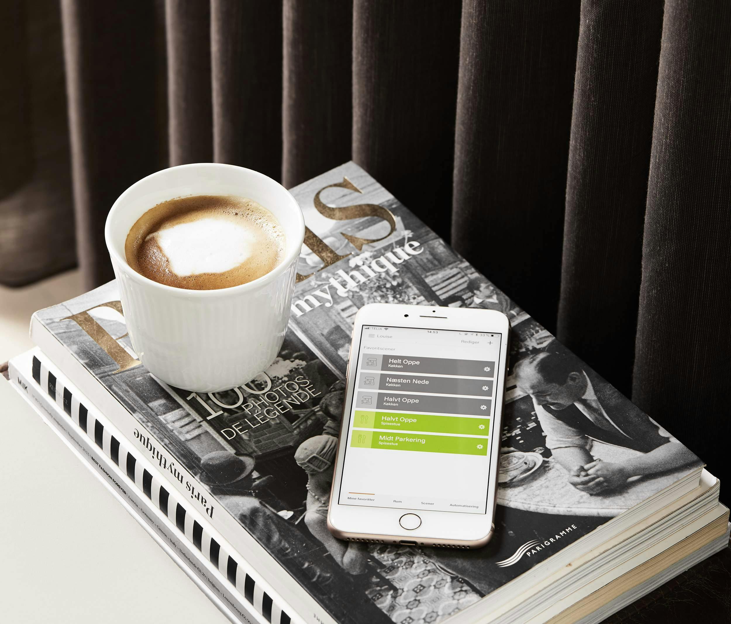 Derfor er familien begejstret for PowerView® fra Luxaflex®. Det giver dem mulighed for at styre gardinerne med deres smartphone, tablet eller Pebble® fjernbetjening. I PowerView® app’en kan de skabe forskellige scener for gardinerne, som passer til deres døgnrytme.